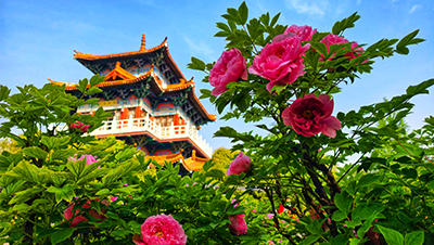 竞翠屏前观劲柏,延青塔上听瑶琴。