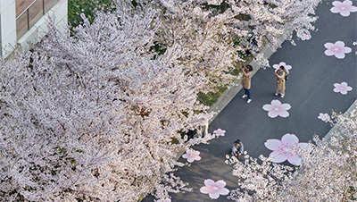 3月18日,游客在湖北省武汉市东湖樱园赏花。