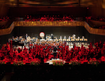 1月3日,小游客在中国考古博物馆互动展区参加仿古编钟的敲击体验活动。