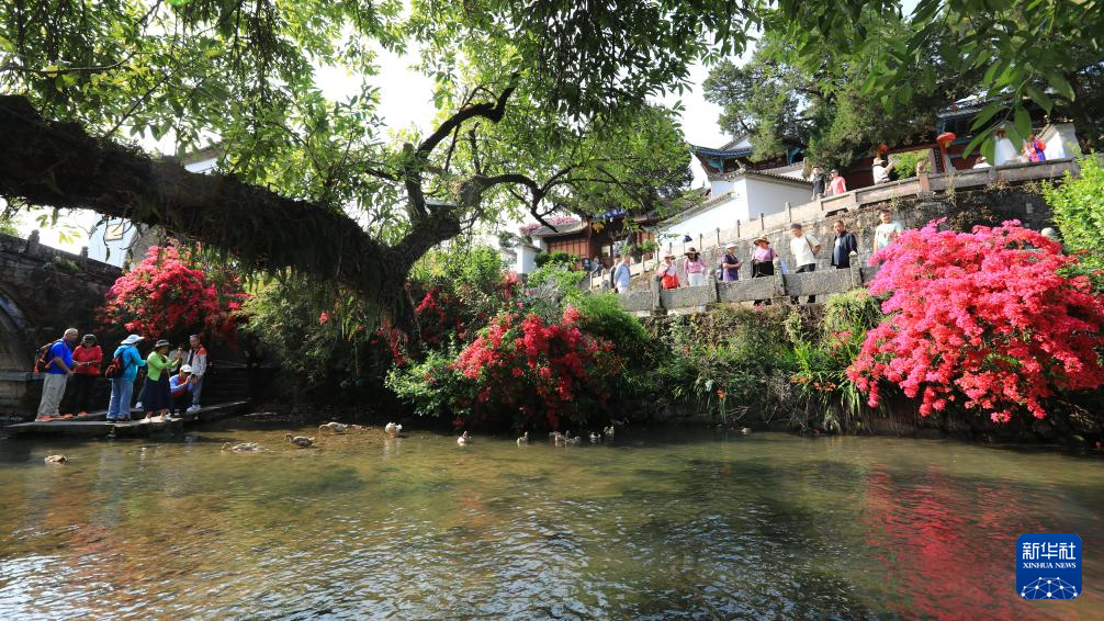 4月26日,游客在云南省腾冲市和顺古镇游玩。