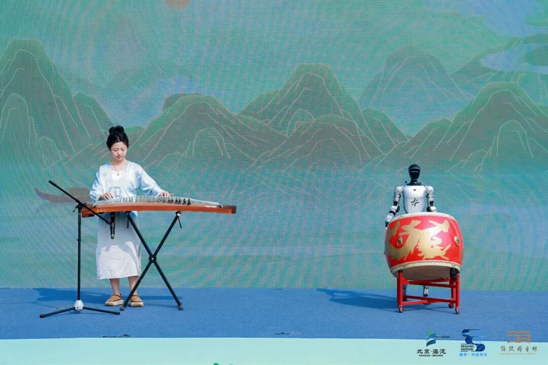 上午十时,阳光洒落草坪,一场科技与古韵交织的开场表演瞬间点燃全场。宇树机器人化身“智能鼓手”,与青年古筝演奏家丰月同台演绎《机鼓琴音》。鼓点铿锵,筝声悠悠,机器手臂的精准敲击与人指尖的温润拨弄奇妙呼应,引得台下一片惊叹。“太酷了!机器人也能打出这么有感情的节奏!”来自现场的小学生李明轩兴奋地和身边同伴说。他身边的好朋友张子豪则瞪大了眼睛,拽着李明轩的校服袖子说:“我以后也想学编程,让机器人给我的玩具打鼓!”两个孩子对视一眼,咯咯笑成一团。